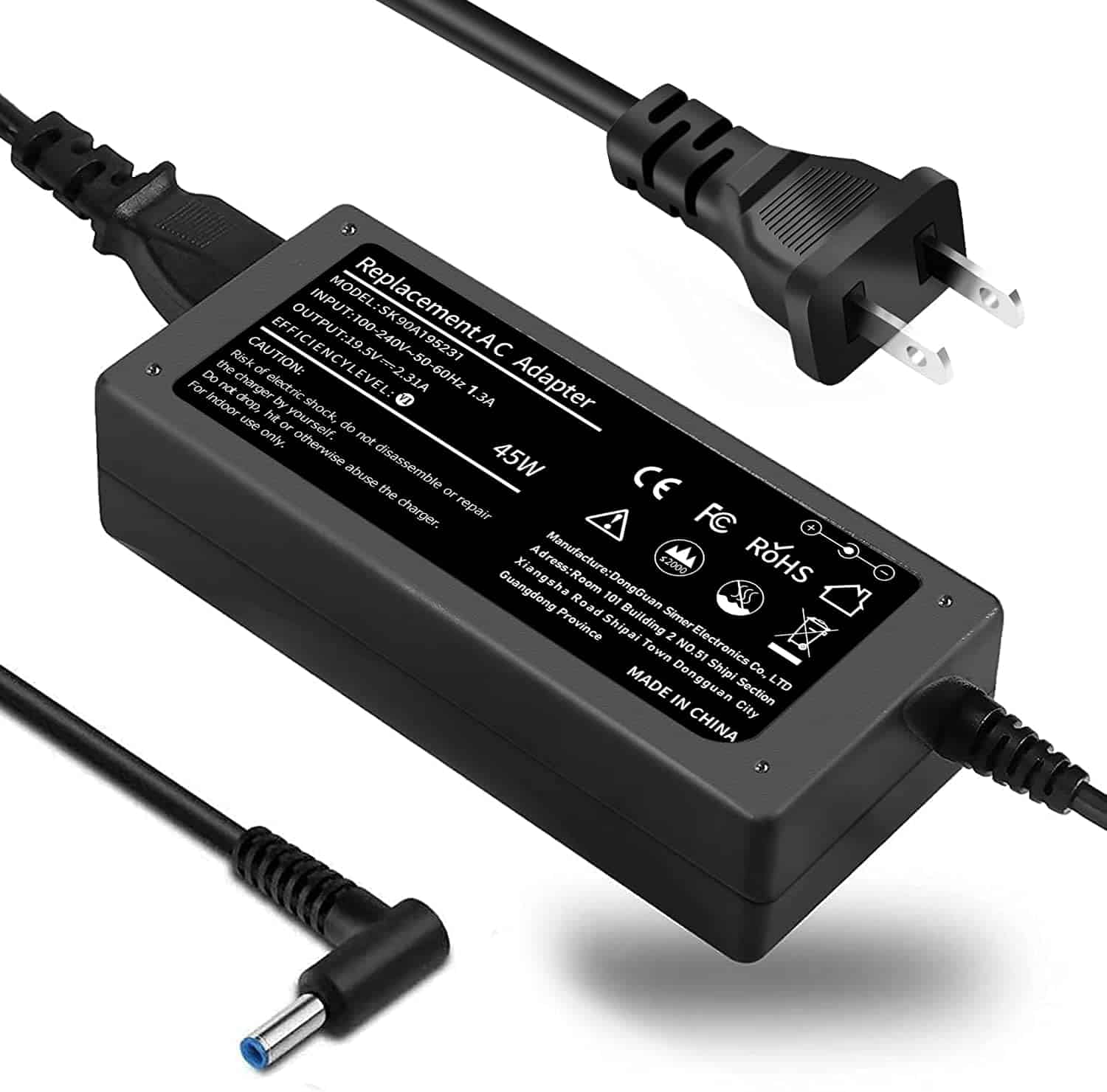 Safety features include short circuit protection to prevent damage to laptops. The charger operates with worldwide voltage inputs (100-240V), making it suitable for international travel. While most customers report good performance, some mention issues with long-term reliability. The manufacturer offers a one-year warranty and customer service support for any compatibility problems.
