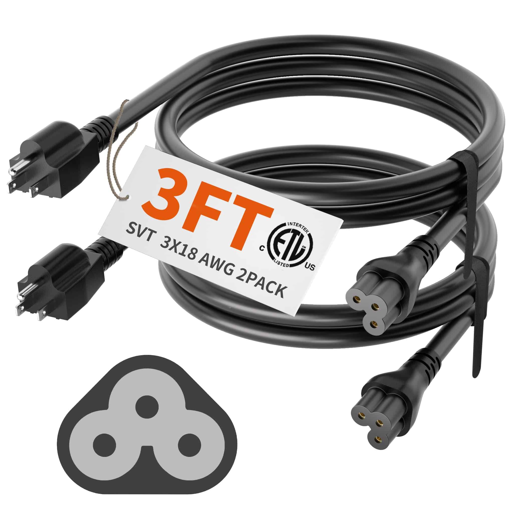 This versatile 3-prong AC power cord provides reliable power delivery for multiple devices with its durable construction and convenient 5-foot length.